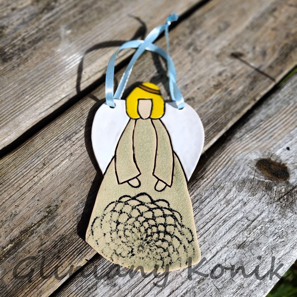 Dodaj uroku każdemu wnętrzu dzięki naszemu ceramicznemu aniołowi do zawieszenia. Każdy egzemplarz jest ręcznie wykonany z wysokiej jakości ceramiki, pokryty glazurą. Anioł został zaprojektowany z myślą o łatwym zawieszeniu – dołączona wstążka umożliwia dekorowanie okien, półek, drzwi czy choinki. Idealny prezent na święta, urodziny lub jako drobna ozdoba do każdego pomieszczenia.