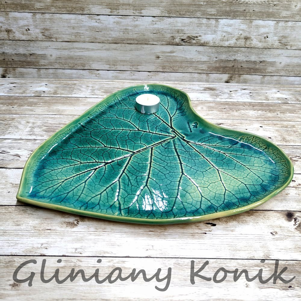 Strona główna » Liście » Duża patera turkusowa z odciskiem liścia