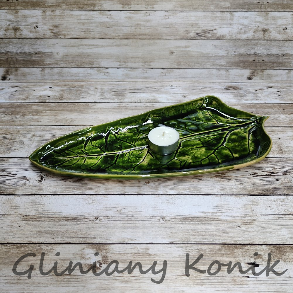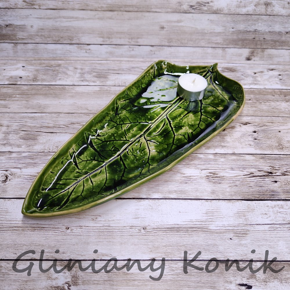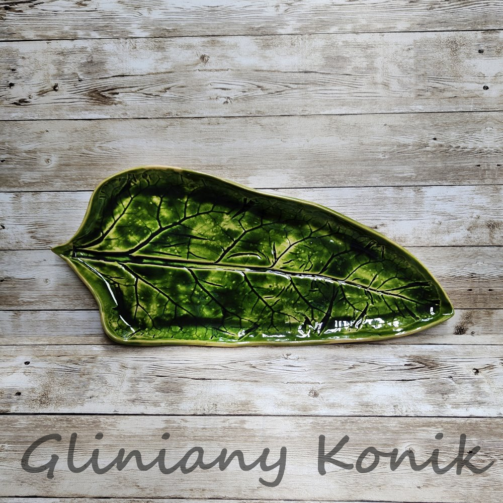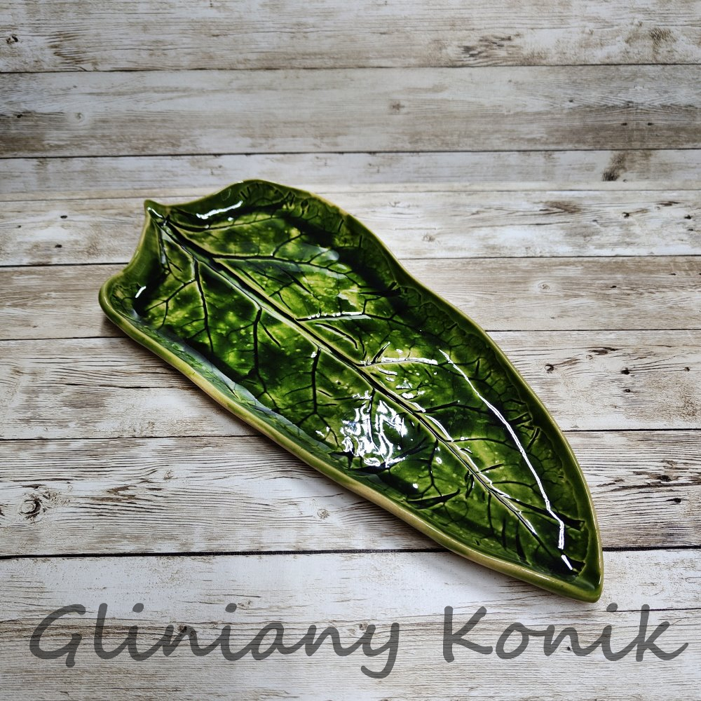 Duży liść ceramiczny ciemna butelkowa zieleń