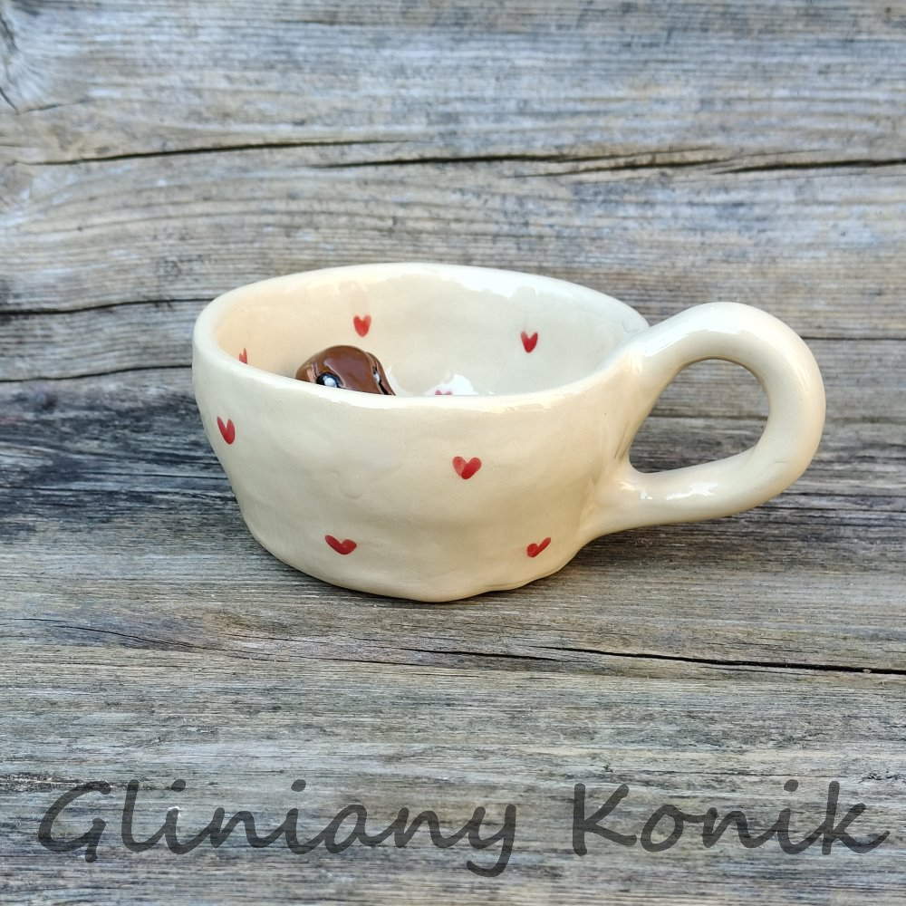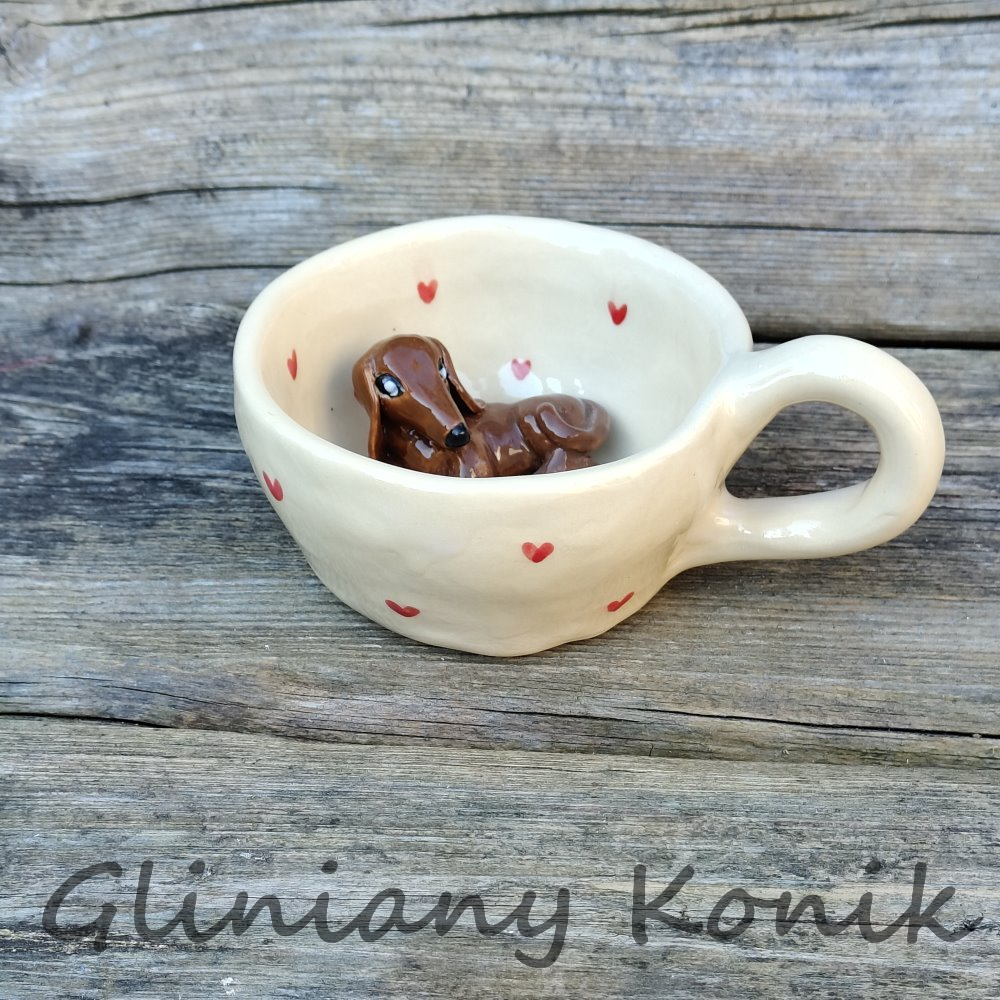 Urocza filiżanka ceramiczna z niespodzianką w środku to idealny wybór dla miłośników kawy, herbaty i… jamników. Na dnie filiżanki znajduje się subtelna figurka jamnika, która pojawia się stopniowo w trakcie picia, wywołując uśmiech i dodając codziennym chwilom wyjątkowego charakteru.