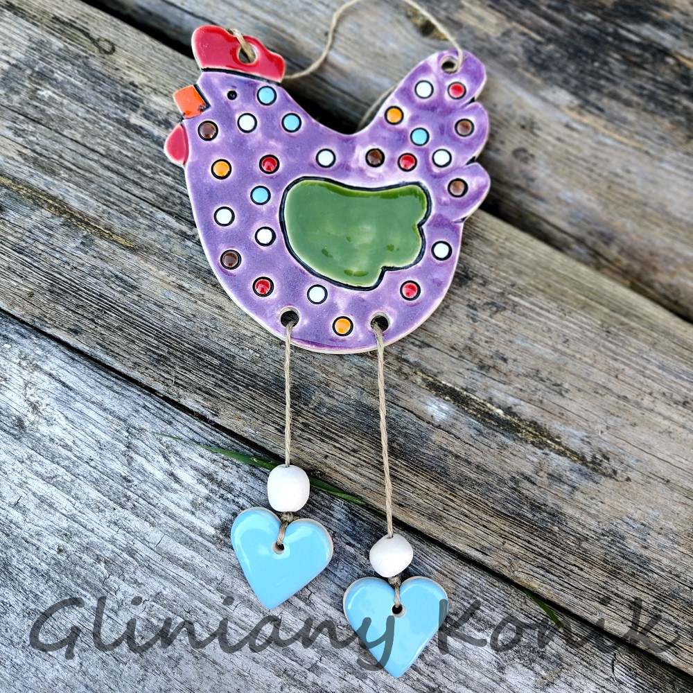 Ten ceramiczny fioletowy kogutek to urocza i nietuzinkowa dekoracja, która doda koloru i charakteru każdemu wnętrzu. Zawieszony w kuchni, oknie, na tarasie czy w ogrodzie – przyciąga wzrok i wywołuje uśmiech. Wykonany z ceramiki i ręcznie malowany, idealnie sprawdzi się jako dekoracja całoroczna lub oryginalny akcent wielkanocny. Wyposażony w sznureczek do zawieszenia – gotowy, by od razu zawisnąć w wybranym miejscu.
