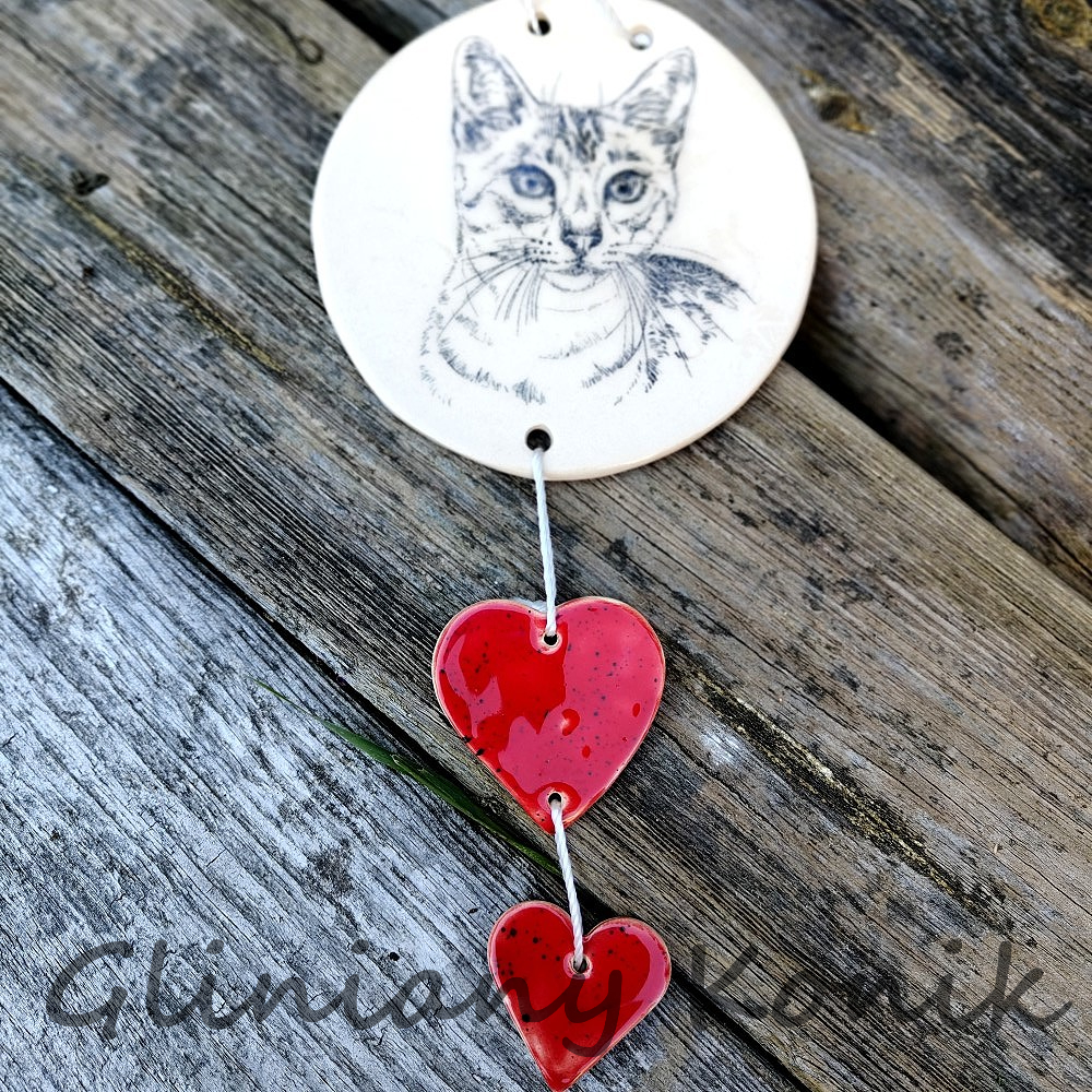 Strona główna » Dekoracje » Dekoracje wiszące » Kot z czerwonymi sercami