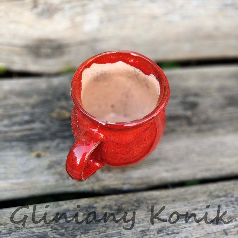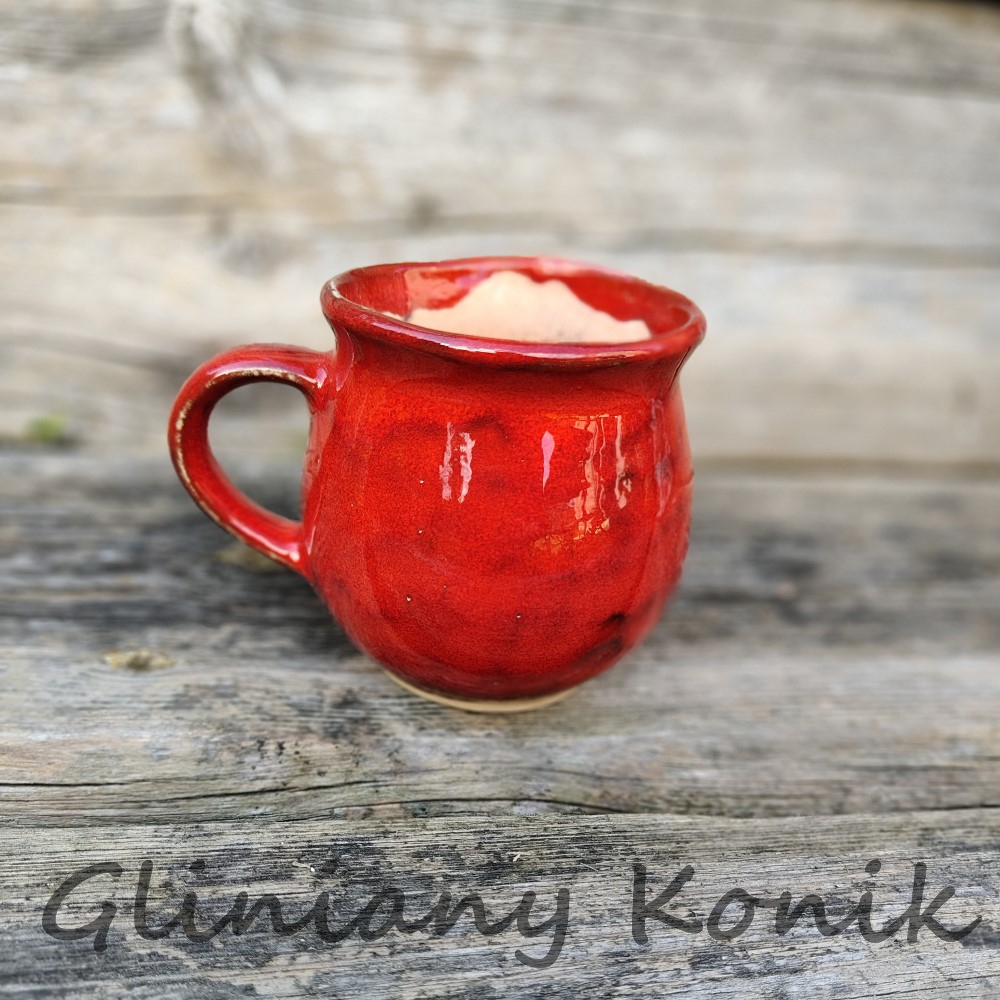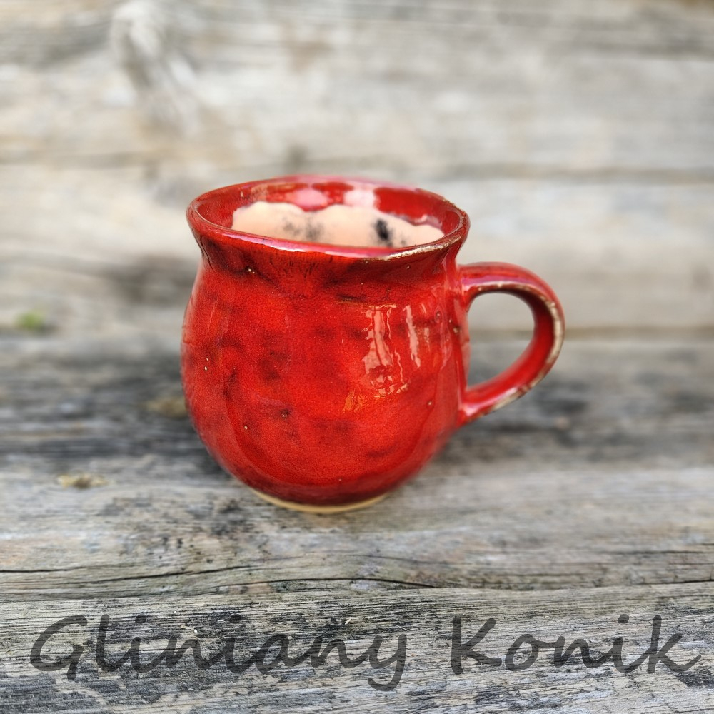 Pękaty kubek z gładką, czerwoną glazurą. Grube ścianki, wygodny uchwyt i stabilna podstawa sprawiają, że to idealny kompan na poranną kawę, herbatę czy kakao. Wytrzymała ceramika, łatwy w utrzymaniu w czystości.