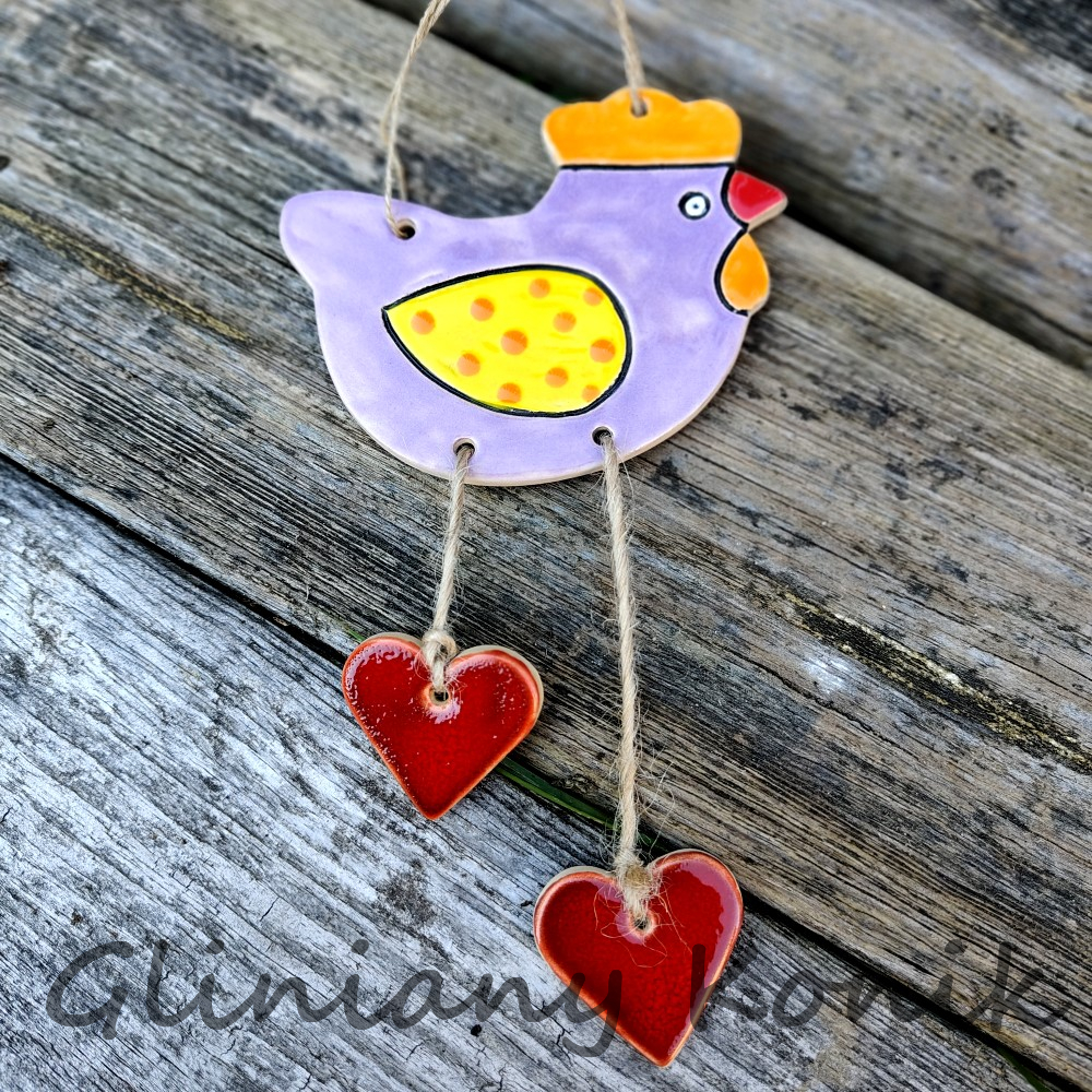 Urocza, ręcznie wykonana ceramiczna kurka z czerwonymi nóżkami to idealna dekoracja do zawieszenia w kuchni, na tarasie, balkonie czy w ogrodzie. Jej zabawny wygląd i sielski charakter wprowadzą do wnętrza ciepło, humor i przytulny, rustykalny klimat. Kurka zawieszona jest na sznurku, a jej charakterystyczne, czerwone nóżki dodają całości lekkości i radosnego akcentu. Doskonale sprawdzi się jako ozdoba całoroczna lub wielkanocna.