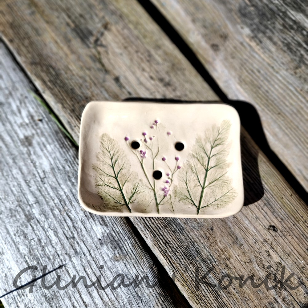 Mydelniczka z odciskiem roślinnym