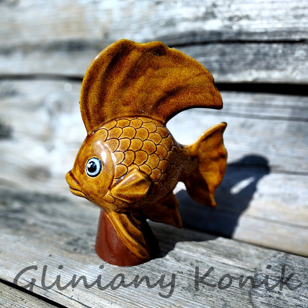 Ceramiczna złota ryba to elegancka ozdoba wykonana z wysokiej jakości ceramiki. Złote połyski dodają wnętrzu luksusowego akcentu, świetnie komponując się z nowoczesnymi, jak i klasycznymi aranżacjami. Produkt doskonały jako dekoracja półki, biurka czy parapetu. Może również pełnić rolę drobnego prezentu dla miłośników wnętrz i kolekcjonerów ceramiki.