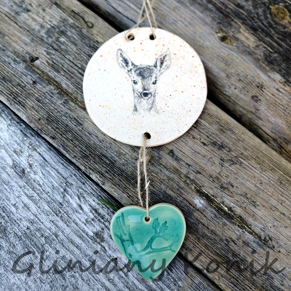 Wyobraź sobie cichy poranek w lesie, gdy rosa lśni na liściach, a między drzewami przebiega zwinna sarna. Ta okrągła dekoracja wisząca z obrazkiem sarny i delikatnym, kołyszącym się serduszkiem to mały kawałek natury zamknięty w uroczym detalu. Sarna na ilustracji emanuje spokojem i wdziękiem, a wiszące pod spodem serduszko to symbol ciepła i bliskości – idealne, by stworzyć w domu atmosferę pełną harmonii i naturalnego uroku. Lekka forma zawieszki doskonale pasuje do wnętrz w stylu rustykalnym, boho czy skandynawskim, a także jako uroczy akcent w dziecięcym pokoju. Ta dekoracja to nie tylko ozdoba – to opowieść o naturze, spokoju i miłości do prostych, pięknych chwil.