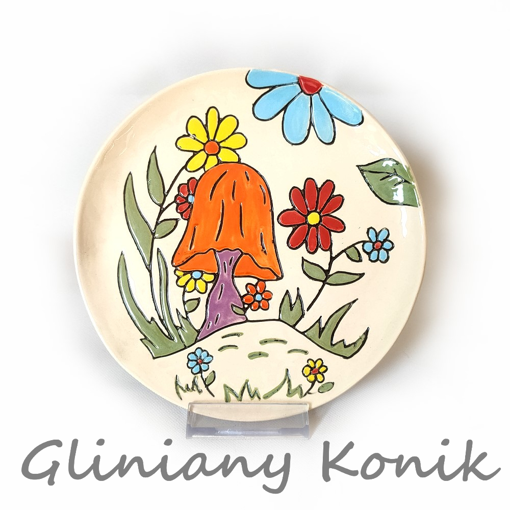 Talerzyk z narysowanym rysunkiem kwiatów i grzybka można wykorzystać na wiele sposobów. Talerzyk może być użyty jako element dekoracyjny. Można go postawić na półce, powiesić na ścianie lub ustawić na stole jako ozdobę. Może służyć jako podstawka pod świeczki, małe doniczki czy inne dekoracyjne przedmioty. Talerzyk można wykorzystać do przechowywania drobnych przedmiotów, takich jak biżuteria, klucze czy przybory biurowe. Może być częścią dekoracji stołu podczas przyjęcia tematycznego, zwłaszcza jeśli motywem przewodnim są kwiaty lub natura. Talerzyk z rysunkiem może być również miłym prezentem. Talerzyk jest również odpowiedni do użytku, można go wykorzystać do serwowania przekąsek lub deserów.