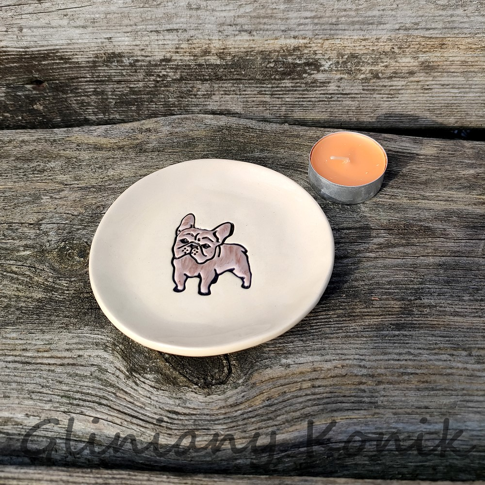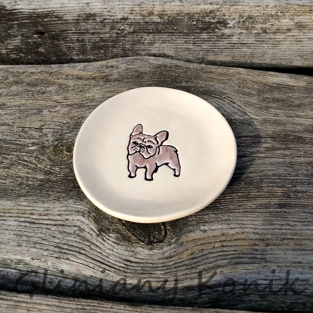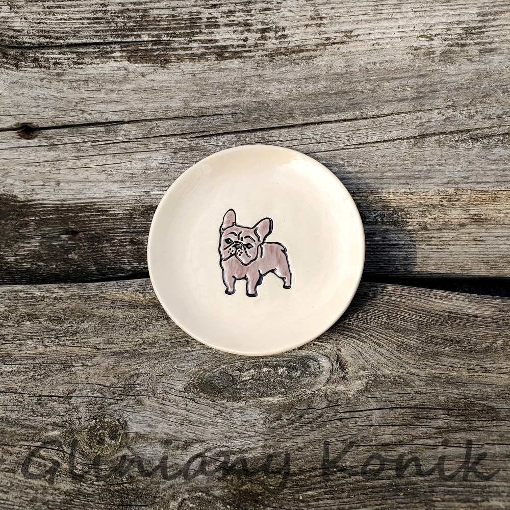 Talerzyk z rysunkiem psa rasy Buldog Francuski